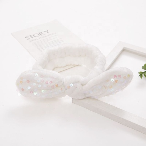 Trắng Mềm Flannel Sequins Bow Headband Có Thể Điều Chỉnh Đàn Hồi Hairband Cho Cô Gái Và Phụ Nữ Cho Spa Yoga Thể Thao Tắm