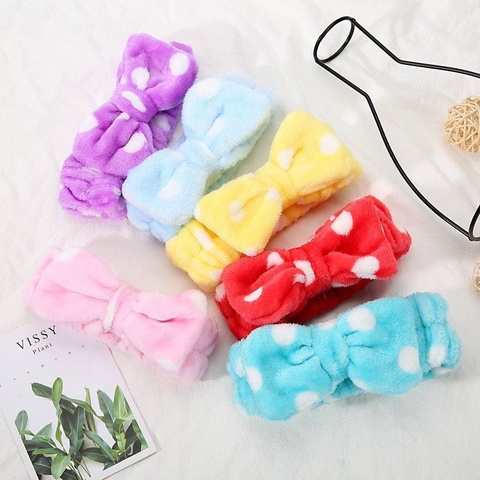 Mềm Coral Fleece Polka Dot Spa Headband Turban Bowknot Trang Điểm Vòi Hoa Sen Băng Đô Headwraps Cho Rửa Mặt