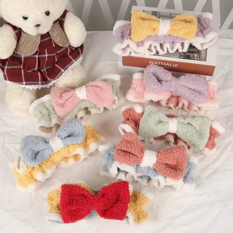 Nhà Máy Trực Tiếp Bán Buôn Công Chúa Fuzzy Bow Spa Headbands Trang Điểm Cho Phụ Nữ