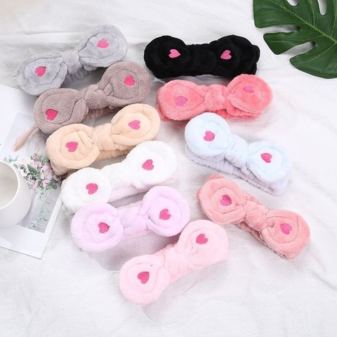 Biểu Tượng Tùy Chỉnh Đàn Hồi Trang Điểm Mỹ Phẩm Headband Đầy Màu Sắc Thêu Tình Yêu Trái Tim Bowknot Lông Spa Hairband Cho Phụ Nữ